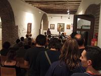受付へ行くと、長い髪を後ろに束ねた男性がいます。いかにもスペイン人って雰囲気。彼に料金を払って自由席の店内へ。2階まで吹き抜けられた高い天井の部屋は、すでに多くの方がはじまるのを待っている感じでした。ざっと50人くらいが入れる広さ。