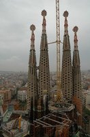 現在、サグラダファミリアは8本の塔が立っています。その塔へ途中まで登ることができるんです。確か75メートルくらいの位置まで。階段で登ったおかげで、塔の造りをじっくり見ることができたんですよ。サグラダファミリアの塔、内部は空洞なんです。ドーナツのようになっています。で、そのドーナツの部分、つまり外側だけ階段になっているんです。それも人がひとり通れるくらいの狭さ。そして途中に展望台(目的が展望台なのか定かじゃありませんが・・・)があって、バルセロナの街並みが見られます。凝ってるなぁ・・・ 感心しっぱなしでした。