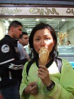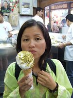 デザートには、アイスクリーム。こんがり焼けたコーンにこれだけ乗っかって、25SP(約58円)。トルコアイスクリームらしく伸びるらしんですが、それほどは伸びなかった。でもピーナッツとの歯ごたえが美味しく、なんと別のお店へハシゴしちゃいました(そのお店も25SP)。
